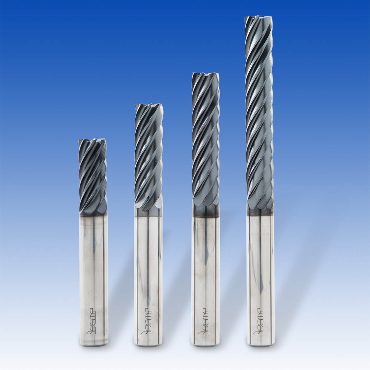 Fig. 1- O design da fresa de topo de carboneto sólido com sete canais para fresagem trocoidal apresenta o conceito CHATTERFREE para melhorar a resistência à vibração.