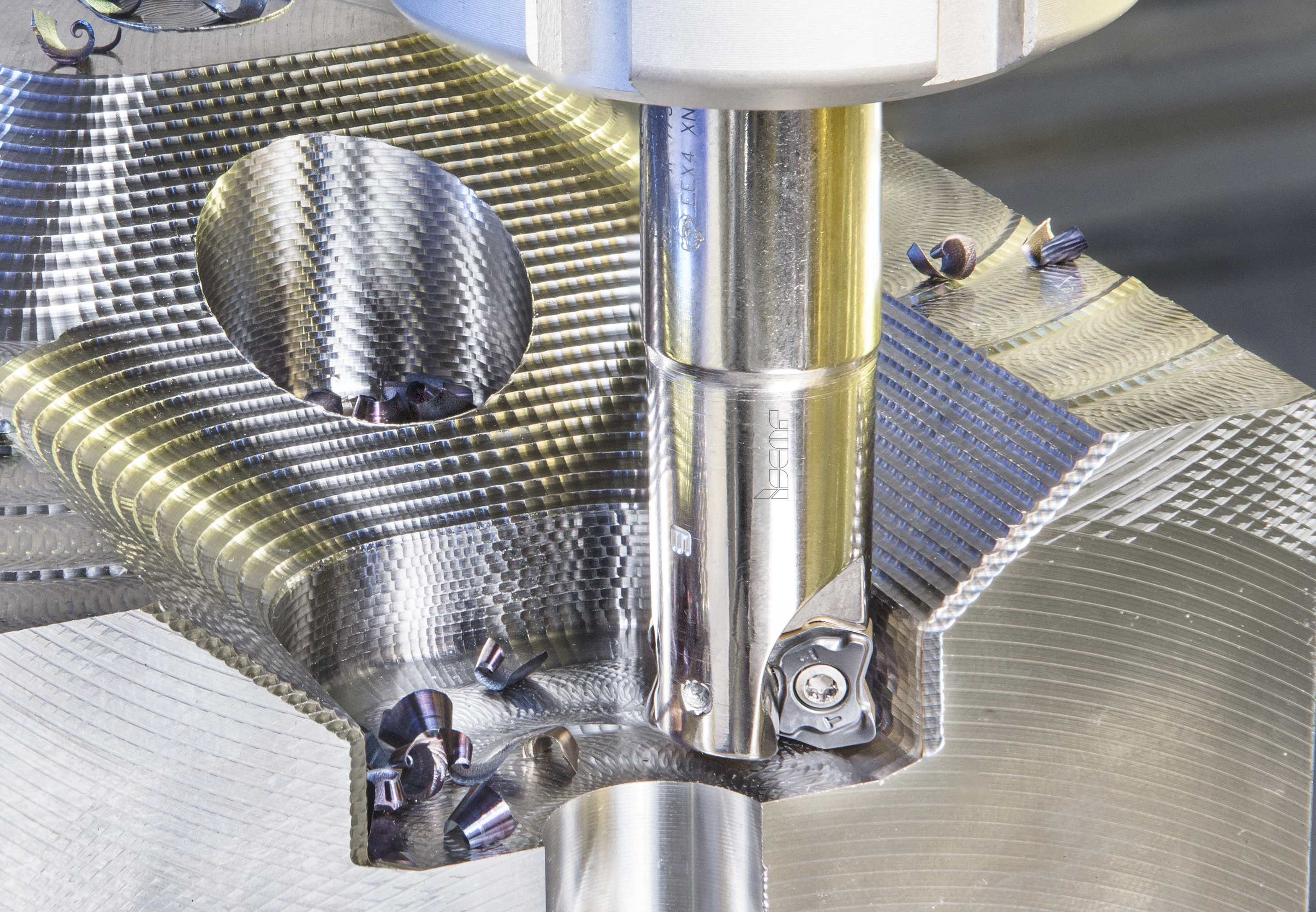 Fig. 3- As fresas de fresagem LOGIQ-4-FEED com pastilhas em forma de osso expandem as capacidades HFM ao usinar cavidades de moldes e matrizes.